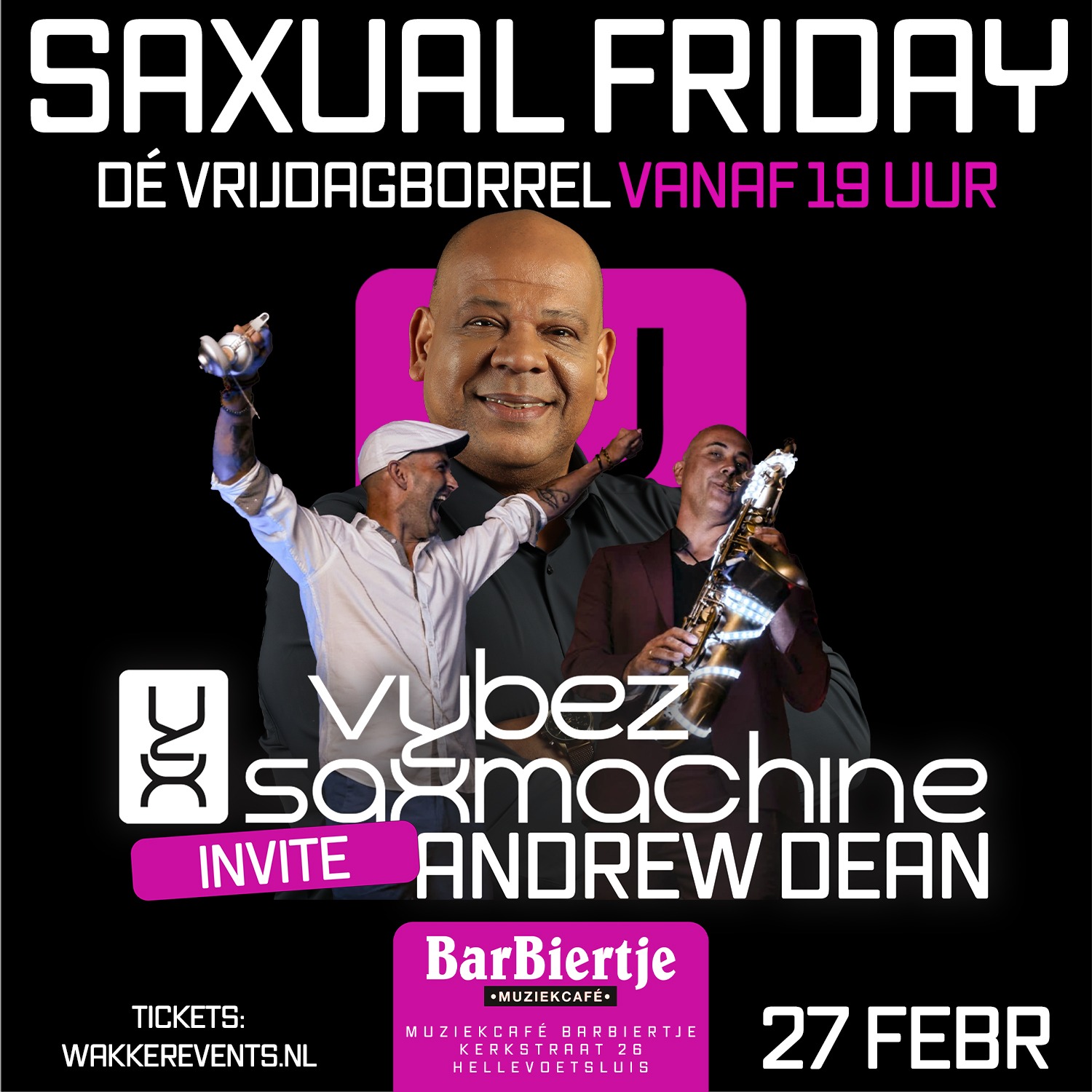 Vrijdag 27 Februari luiden wij jouw weekend perfect in met Saxual Friday, Dé VRIJDAG BORREL van Hellevoetsluis met niemand minder dan Vybez & Saxmachine als jullie gastheren!